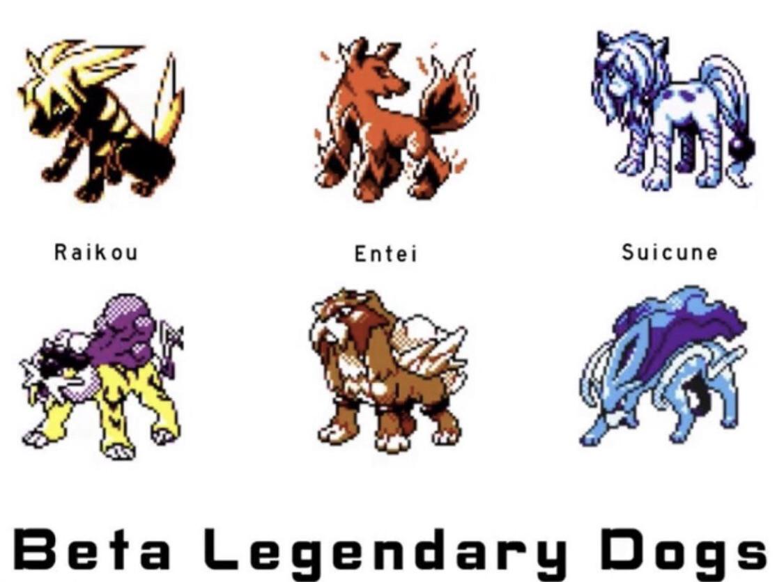 Here are the beta designs for the legendary dogs alongside their final counterparts. Look at the difference in design language. The first row is instantly recognizable as dogs with obvious elemental typing. The bottom row is some manner of creature, indistinguishable at a glance to the point that many players automatically think that they're felines, rather than canines. The design fails to convey what it needs to convey to the player, and I have no idea why this choice was made. And we see that over and over again when we compare the beta designs to their final counterparts. Sometimes the changes even completely lose the plot and destroy the cohesiveness of evolutionary family lines.